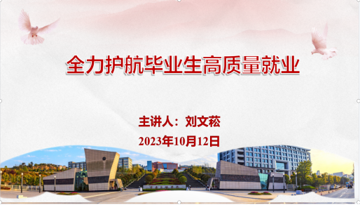首先刘处长通过询问同学们未来规划的方式,对当前毕业年级存在的问题进行解释和分析。接着主讲人在会上通过分享身边人的故事,鼓励毕业生抓住机会,放眼长远。然后主讲老师提出让同学们利用好网络积极地向外投简历,要勇于试错抓住机会的想法并表达了对毕业生未来的期待。会上同学们与老师积极交流沟通,气氛轻松活跃。
